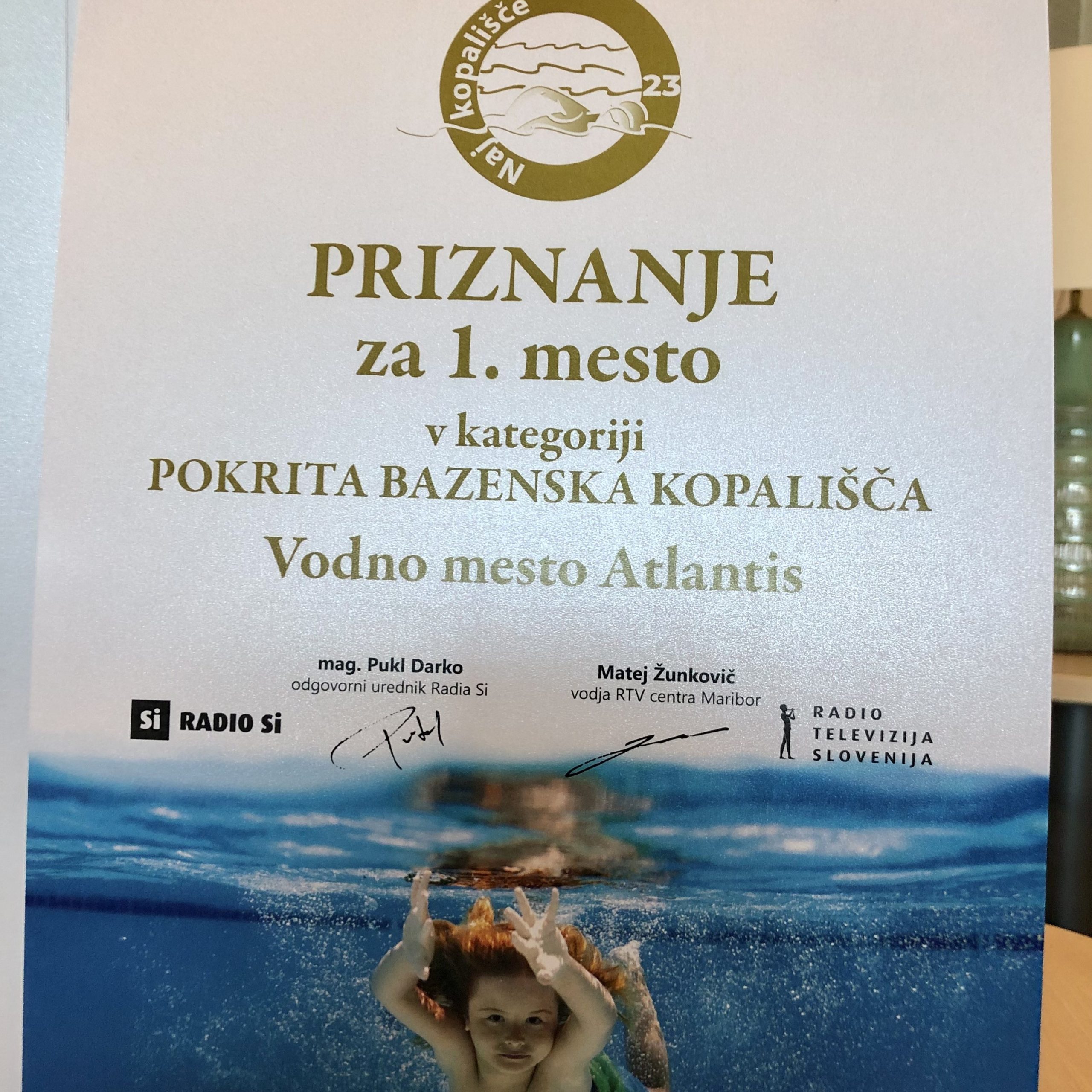 Atlantis Water Park in BTC City Ljubljana once again won the prestigious Best Swimming Pool title in the indoor swimming pools category. The competition was organised by RTV Slovenija and the Dobro jutro webportal and included several radio stations, with winners being chosen by visitors of swimming pools.