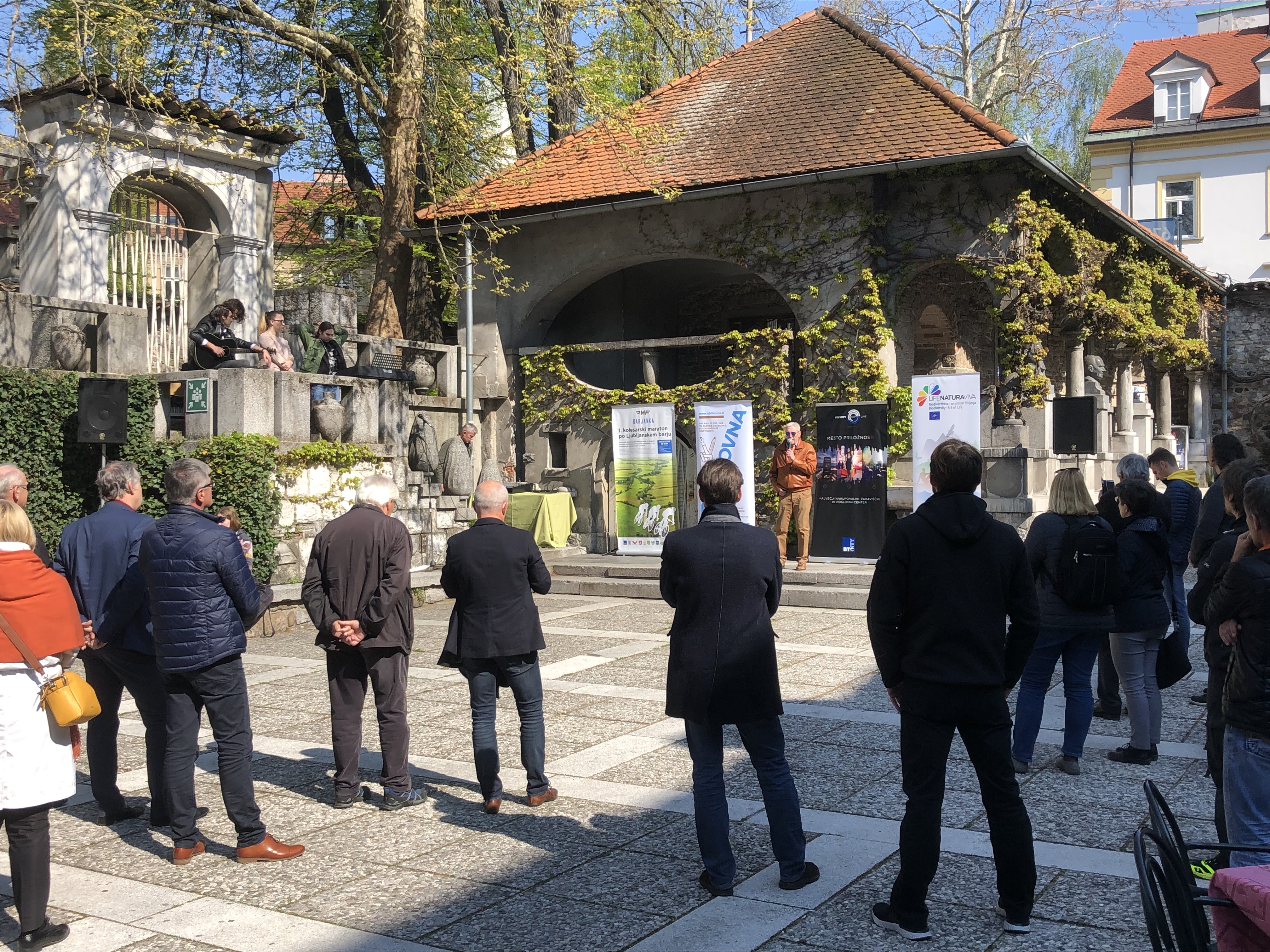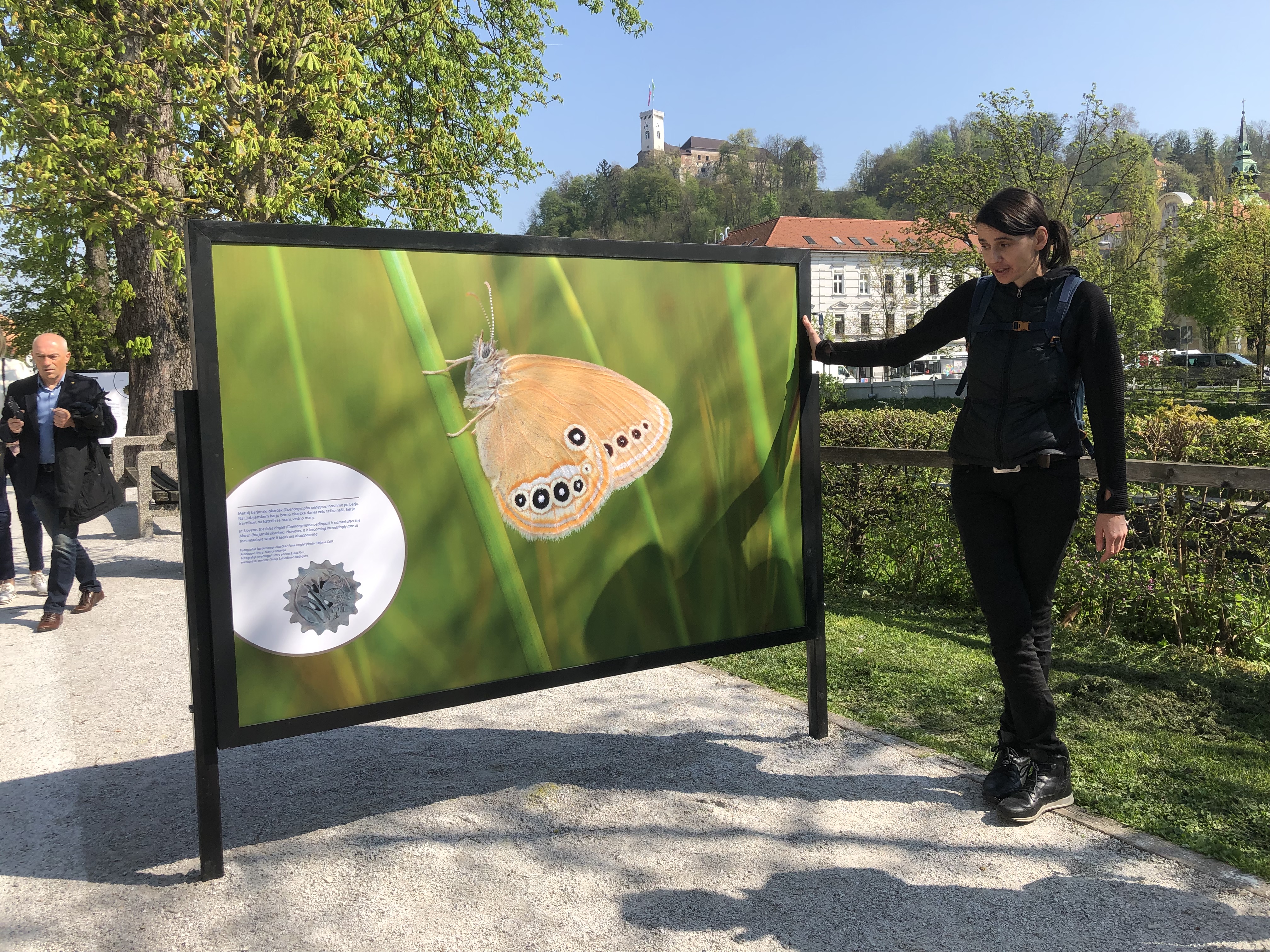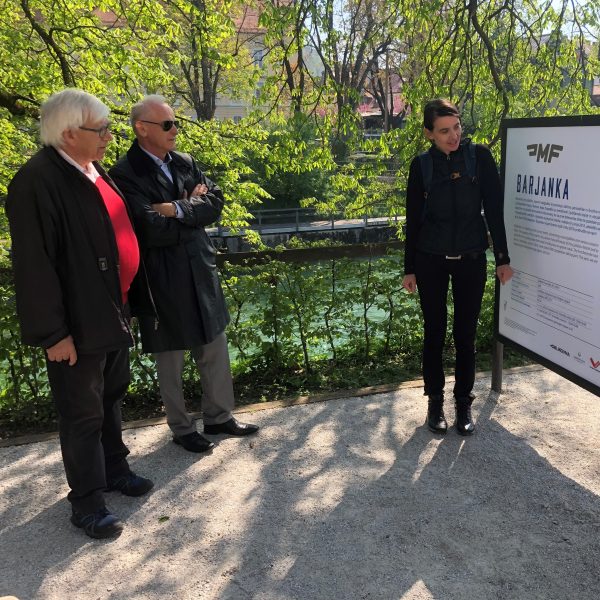 At the opening, guests were greeted with speeches by editor of the exhibition, Maša Bratina, principal of SŠOF, Gregor Markelj, director of Public Institute KP Ljubljana Marshes, Janez Kastelic, vice-mayor of the City Municipality of Ljubljana, Aleš Čerin, and Jože Mermal, president of Marathon Franja BTC City Organising Committee and president of the BTC Company Management Board. Following the introductory part of the event, together with the guests they took a stroll along the embankment Krakovski nasip to visit the exhibition. The boards on the embankment present photographs from the last year’s recreational cycling marathon Barjanka, some motifs of the Ljubljana Marshes landscape and sights, as well as suggestions for the Barjanka medals, designed by secondary school students from SŠOF.